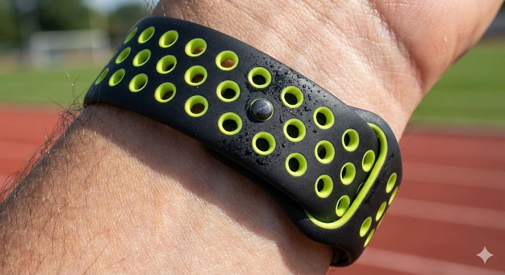 Strap ini tidak hanya nyaman, tetapi juga tahan keringat dan mudah dibersihkan. Desainnya mendukung aktivitas olahraga berat tanpa mengurangi estetika.